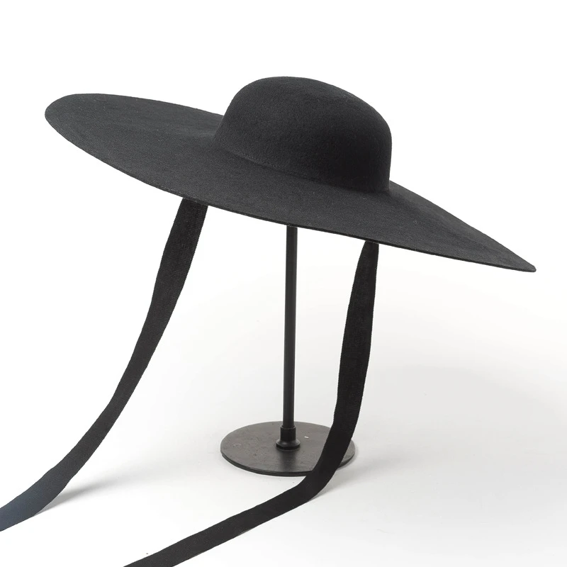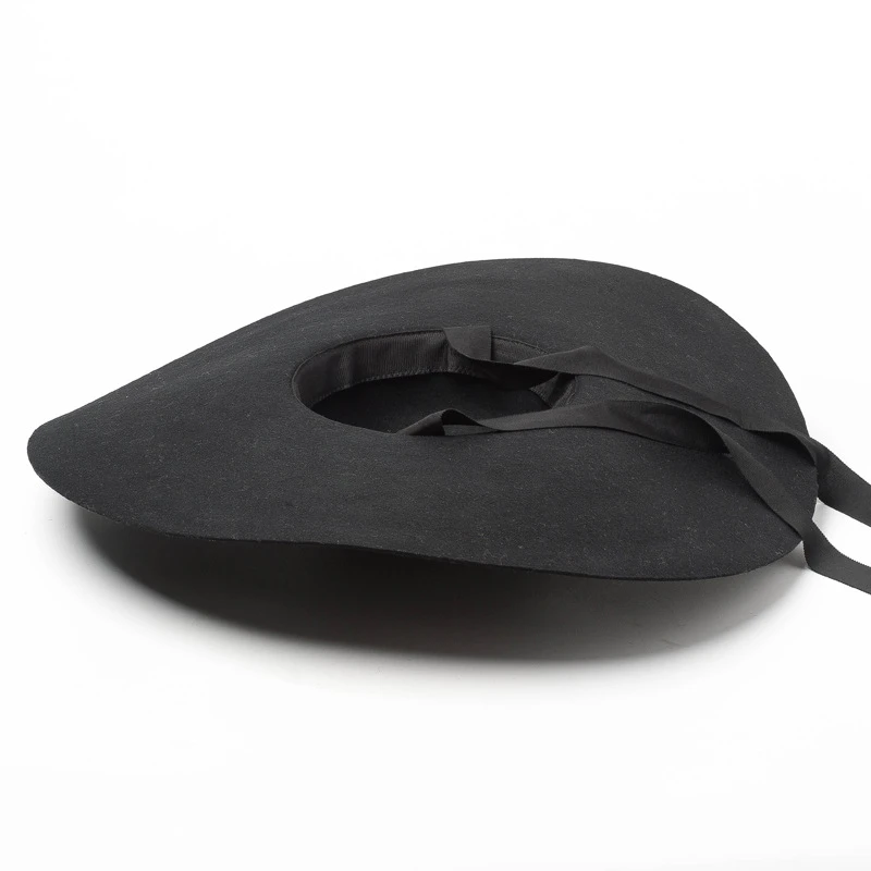 Chapeau Breton En Feutre Noir Au Sommet Arrondi