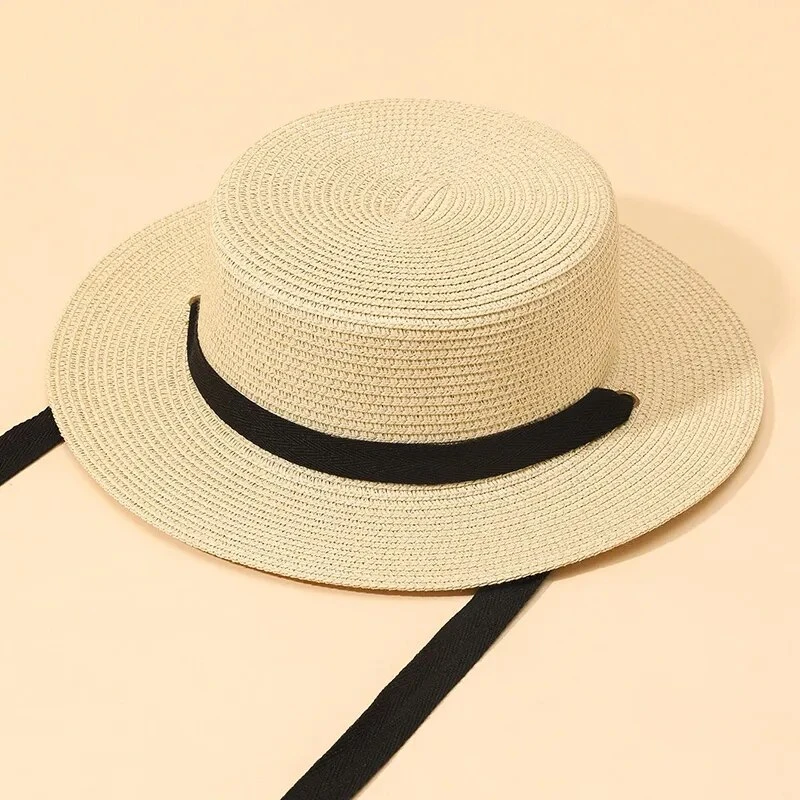 Chapeau Canotier En Paille Avec Ruban