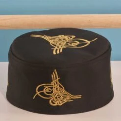 Chapeau Marocain Noir Avec Des écritures Dorées